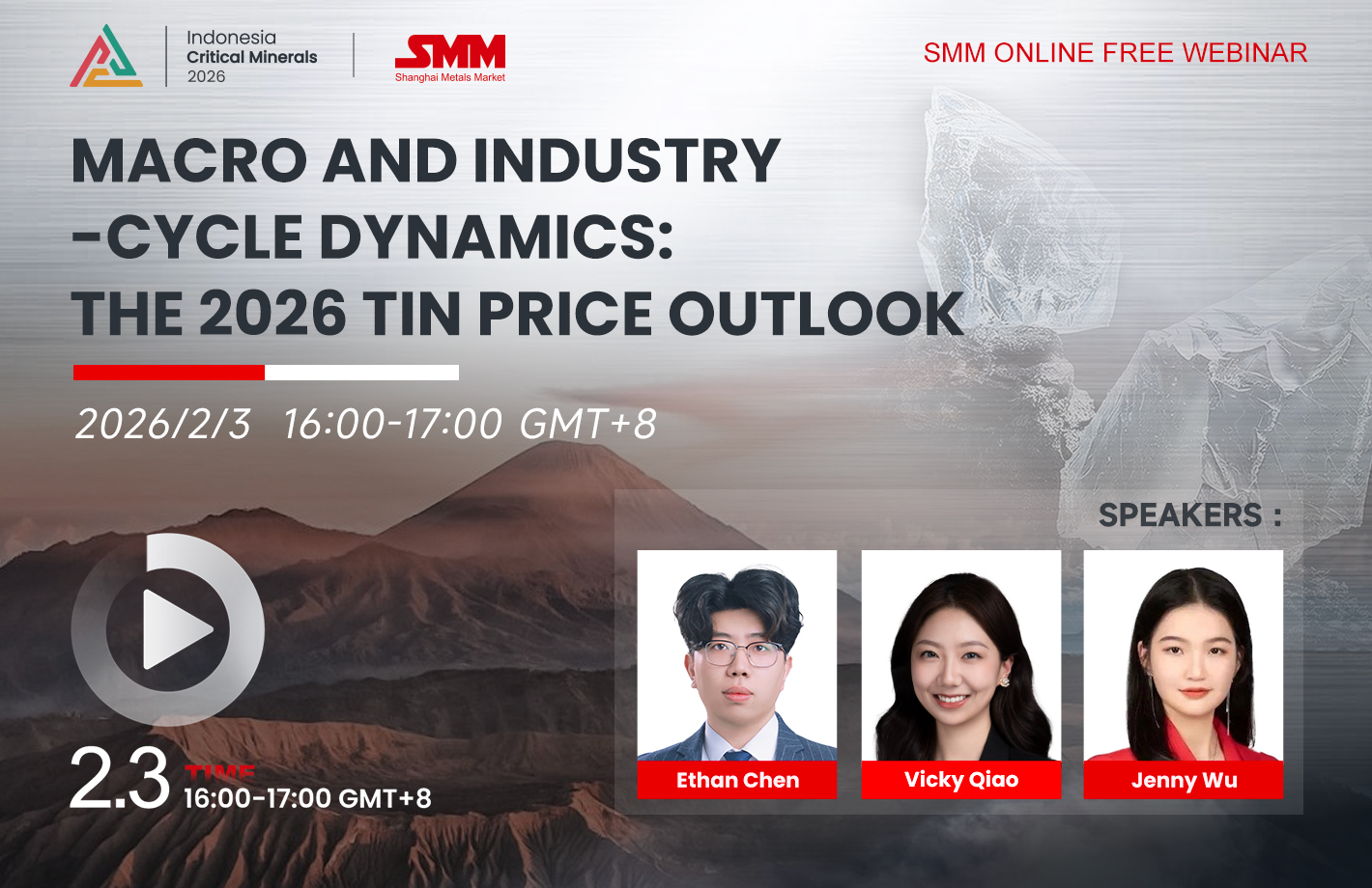 Date:February 3,2026 16:00:00 - February 3,2026 17:00:00SMM Tin Year-End Review: Macro and Industry-Cycle Dynamics: The 2026 Tin Price Outlook