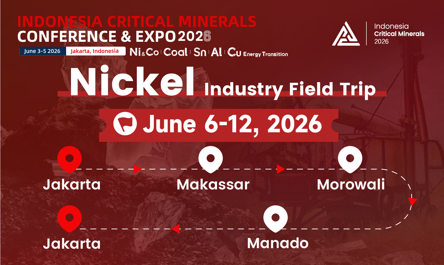 Location:Jakarta, IndonesiaAs the premium social gala of the 2026 Indonesia Critical Minerals Conference (ICM), this exclusive event will be held in Jakarta on June 4th, 18:00-21:00—a core platform for in-depth networking among industry elites.